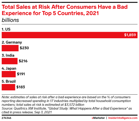 Despite significant investment in voice of the customer (VOC) programs, most are not reaching their full potential, resulting in poor customer experience (CX) and unsatisfactory financial gains. This muted performance puts $3.572 trillion in global consumer spending—9.5% of sales—at risk every year, according to September 2021 research from Qualtrics XM Institute.