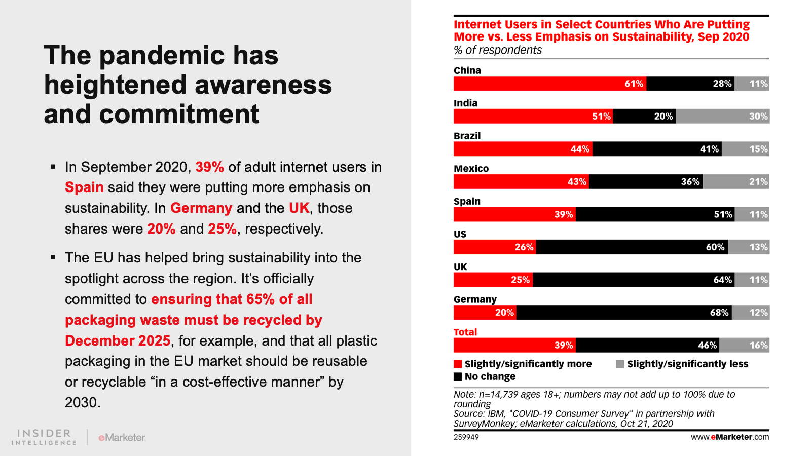 The pandemic brought a surge in ecommerce across Europe—and also increased consumers’ awareness of sustainability issues. Retailers and brands are under pressure to make online purchasing more sustainable—and both can benefit from doing so.