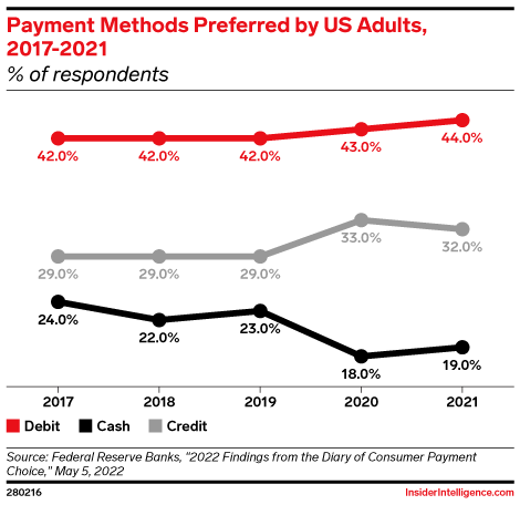 KEY STAT: Consumer payment preference continues to move toward digital methods—with debit reigning supreme—but new methods are catching on and threaten to upend legacy providers.