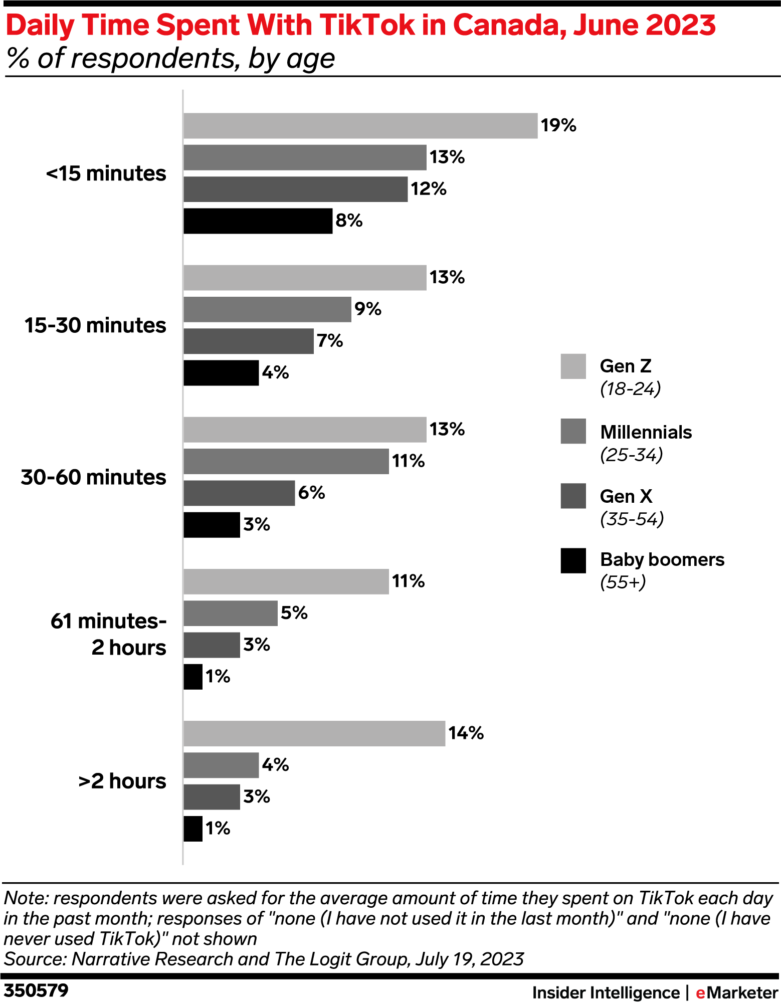 KEY STAT: A quarter of Gen Zers in Canada spend more than an hour a day on TikTok, according to June 2023 polling by Narrative Research and The Logit Group.