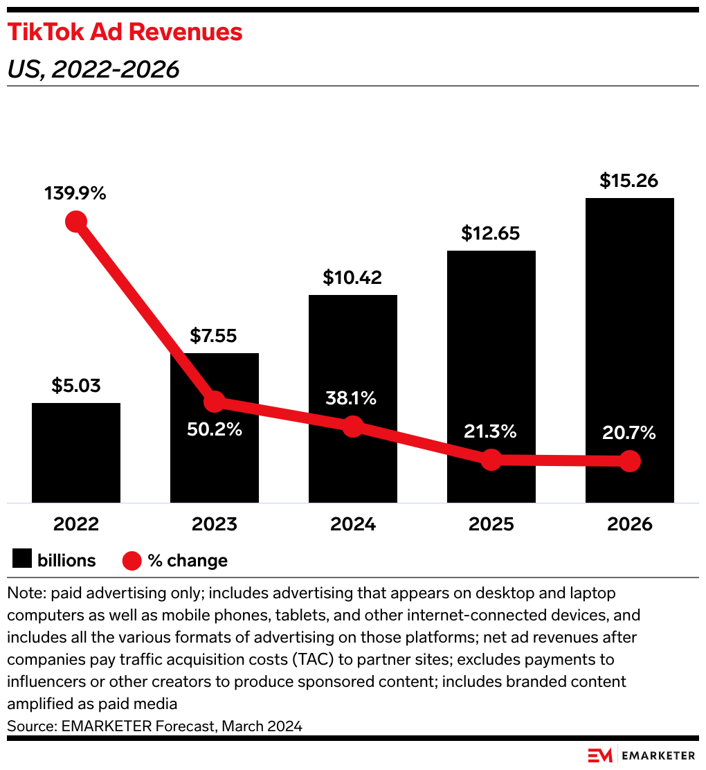 - With TikTok’s pivotal role in short-form video and popularity among younger demographics, brands are unlikely to cut ad spending on the platform unless forced to.