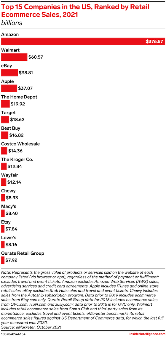 The forecast: The rebound of in-store shopping in the US has been stronger this year than we initially anticipated in April. Despite this, most of the top retailers still managed to achieve ecommerce growth this year, with the top 15 reaching more than $648 billion in sales.