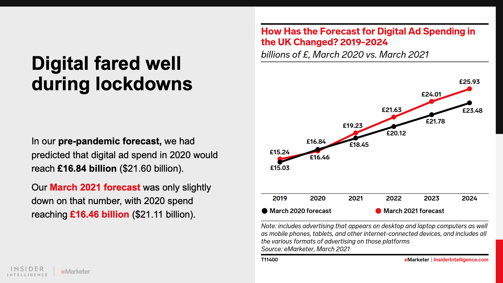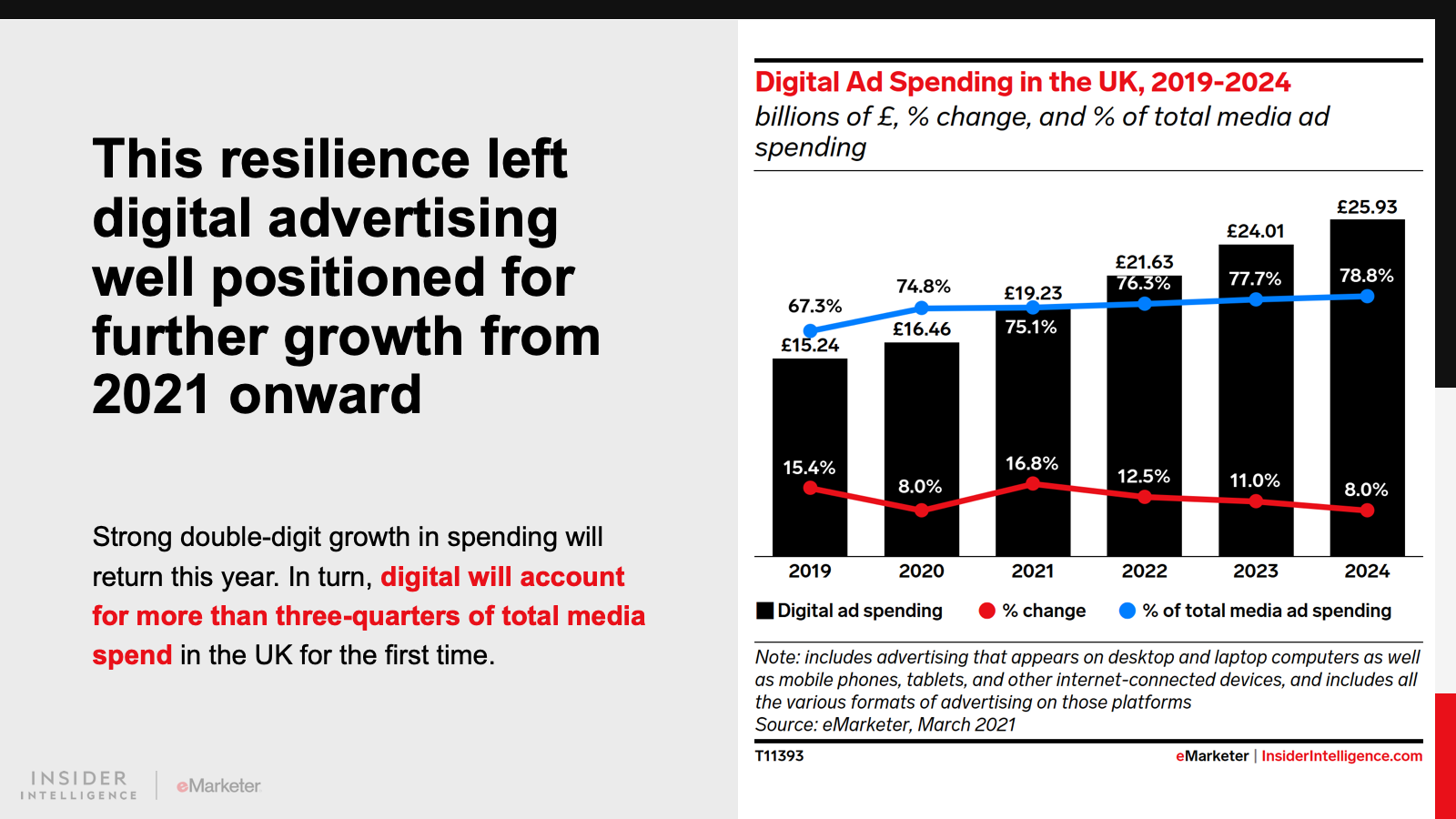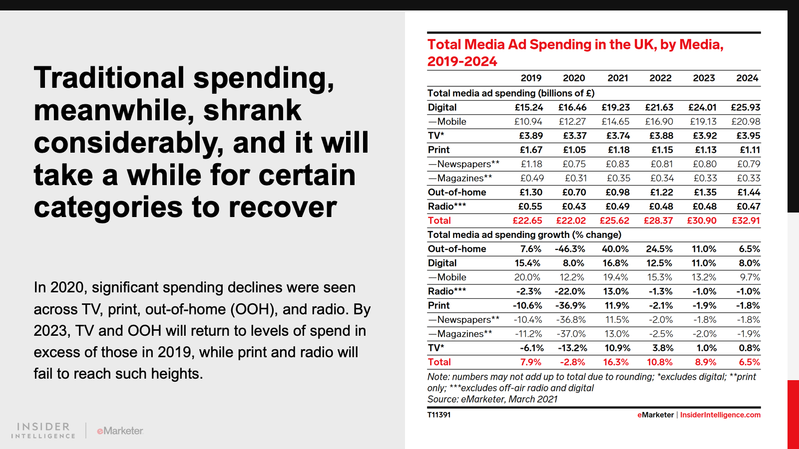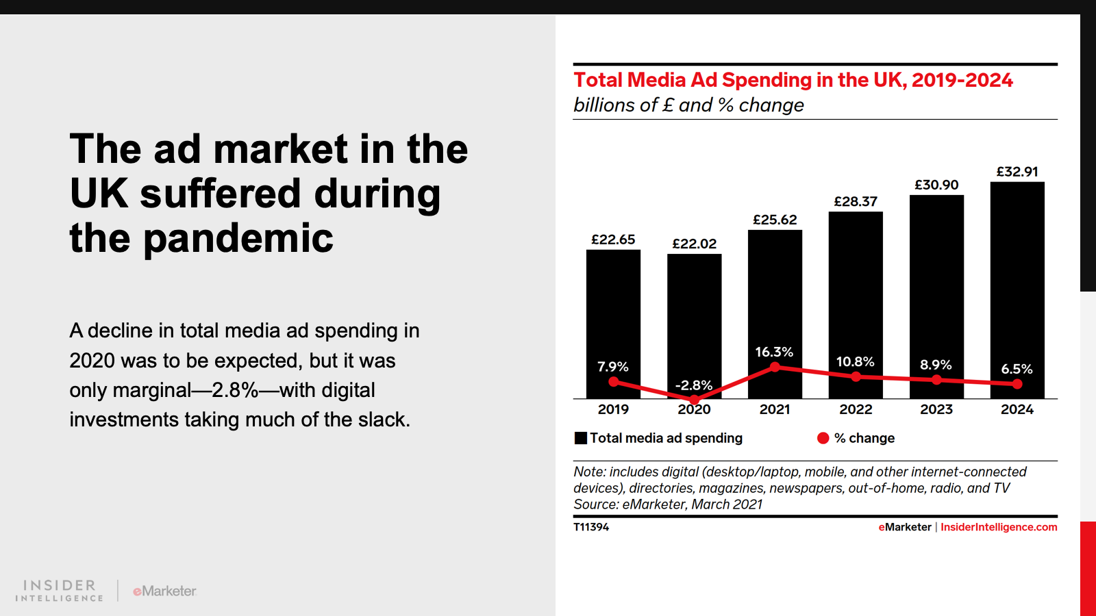 WHAT’S IN THIS REPORT? This report features our latest forecast for UK ad spending, including breakouts by media, format, and company. It also examines how the pandemic affected the ad market last year, and how new dynamics may play out in the future.