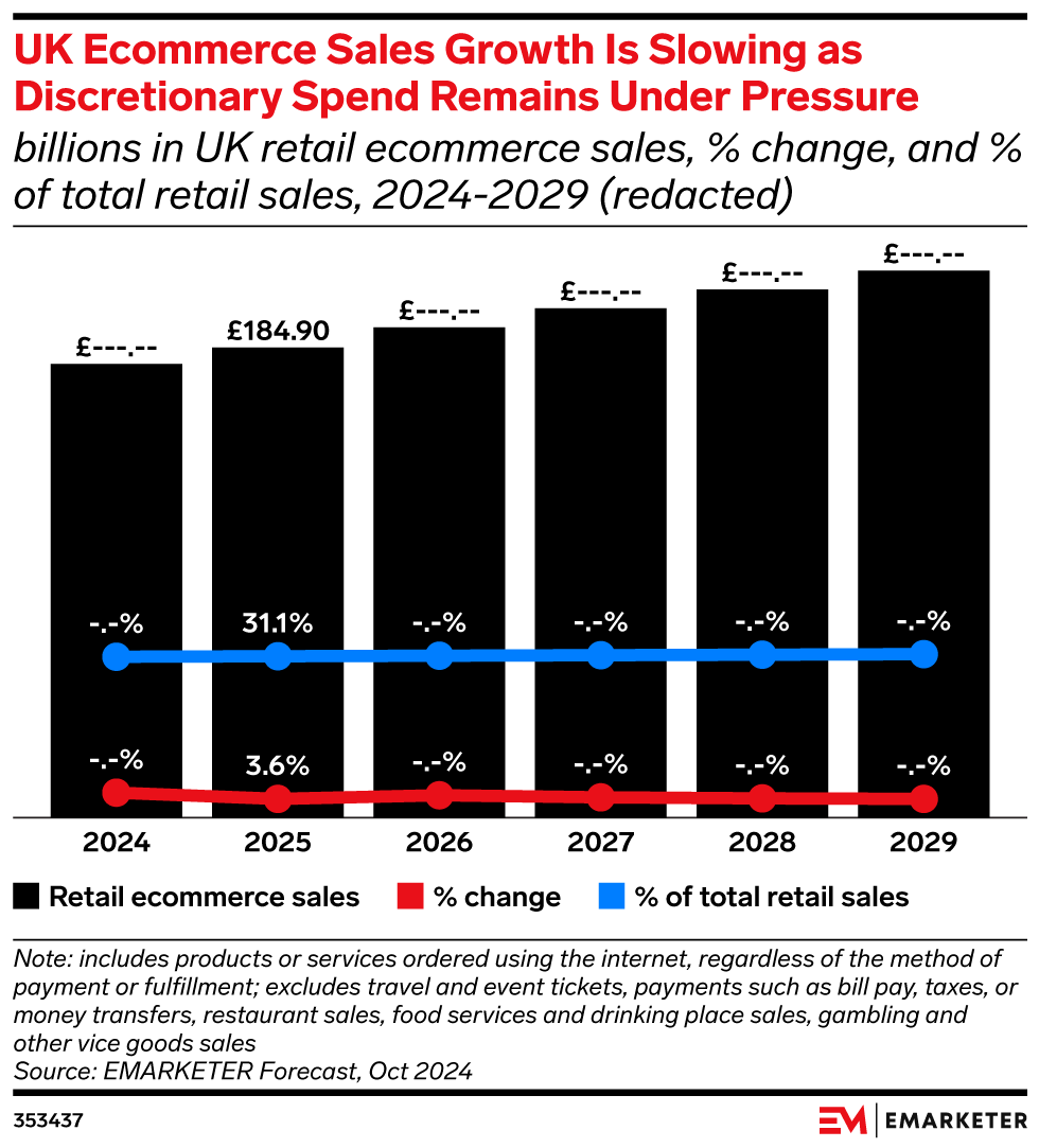 Key Stat: UK ecommerce sales growth will slow to 3.6% in 2025 before accelerating slightly in 2026.