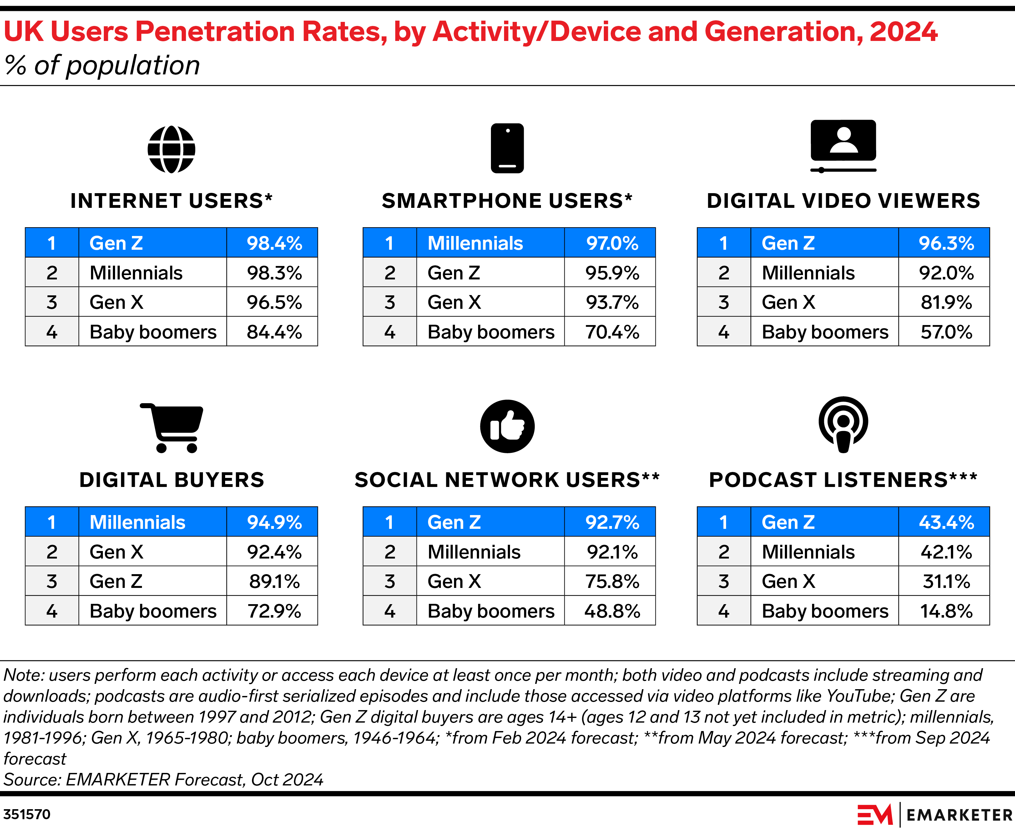 Key Stat: Gen Z leads most age groups in terms of digital habits. Social network user penetration among this cohort will exceed that of millennials this year for the first time, at 92.7%.