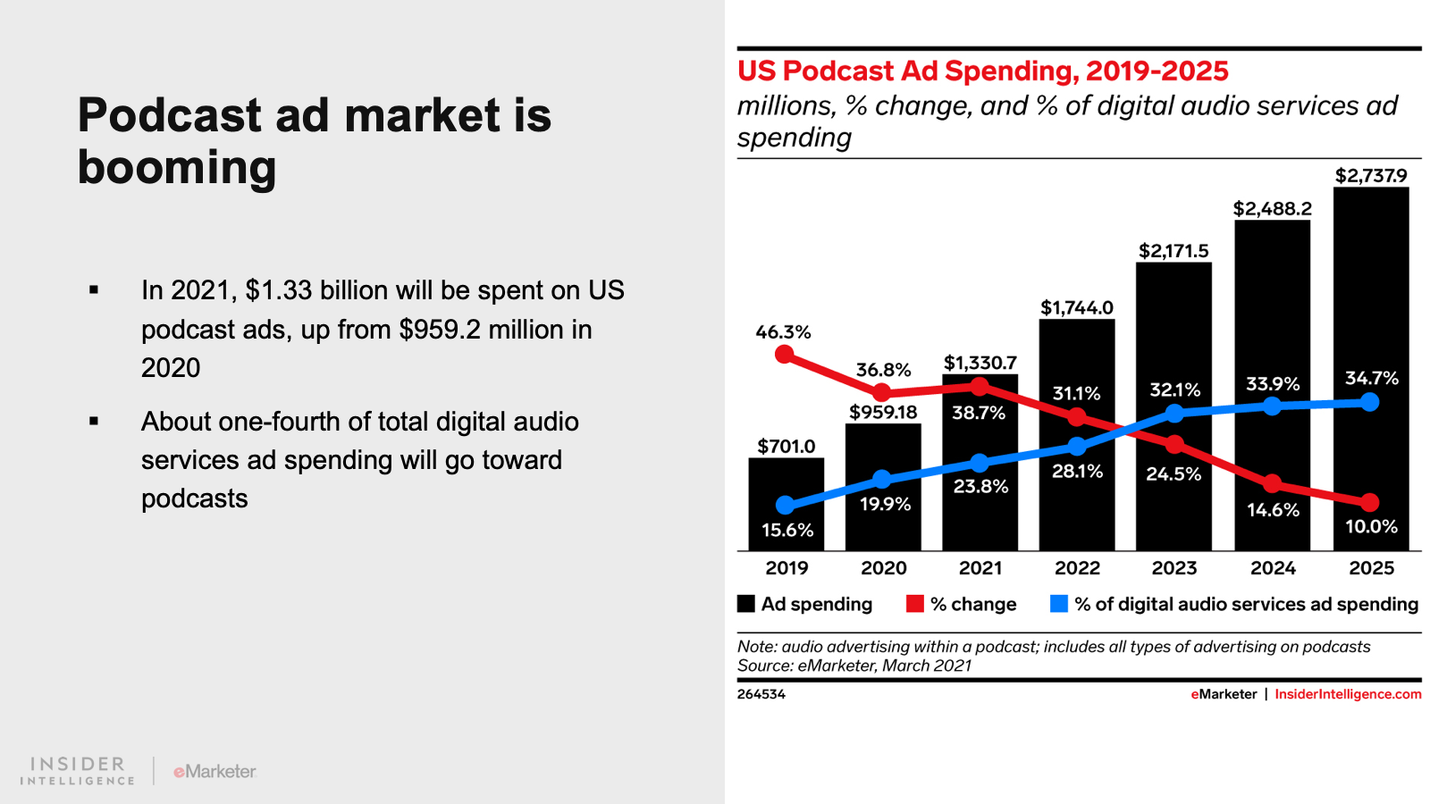 The pandemic didn’t slow—and hasn’t slowed—the advertising and subscription dollars flowing into digital audio, especially after some of the largest tech companies in the world started investing heavily in this space. This new interest signaled that digital audio was no longer experimental for advertisers or content creators.