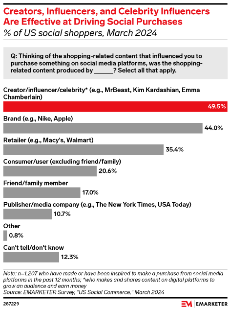 The path to purchase from social media isn’t always linear, but creators play a critical role in getting shoppers to convert. Our survey of US social shoppers unearthed key insights into how creators, influencers, and celebrity influencers are driving purchases from social media.