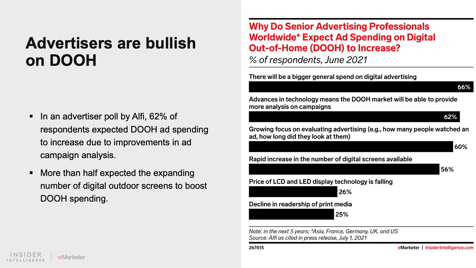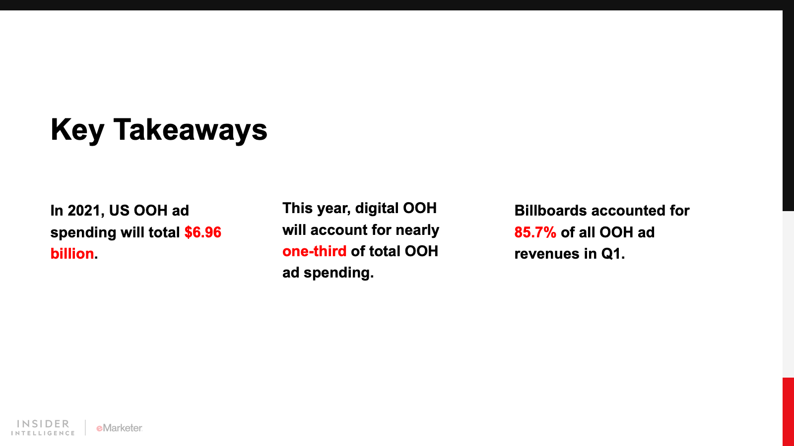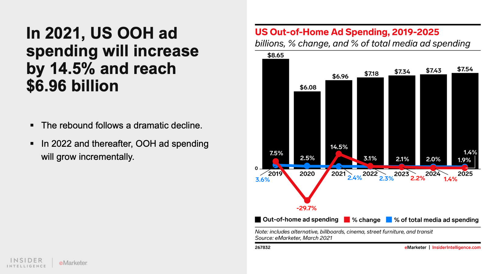 We expect US OOH ad spending to increase 14.5% this year for a total of $6.96 billion.
