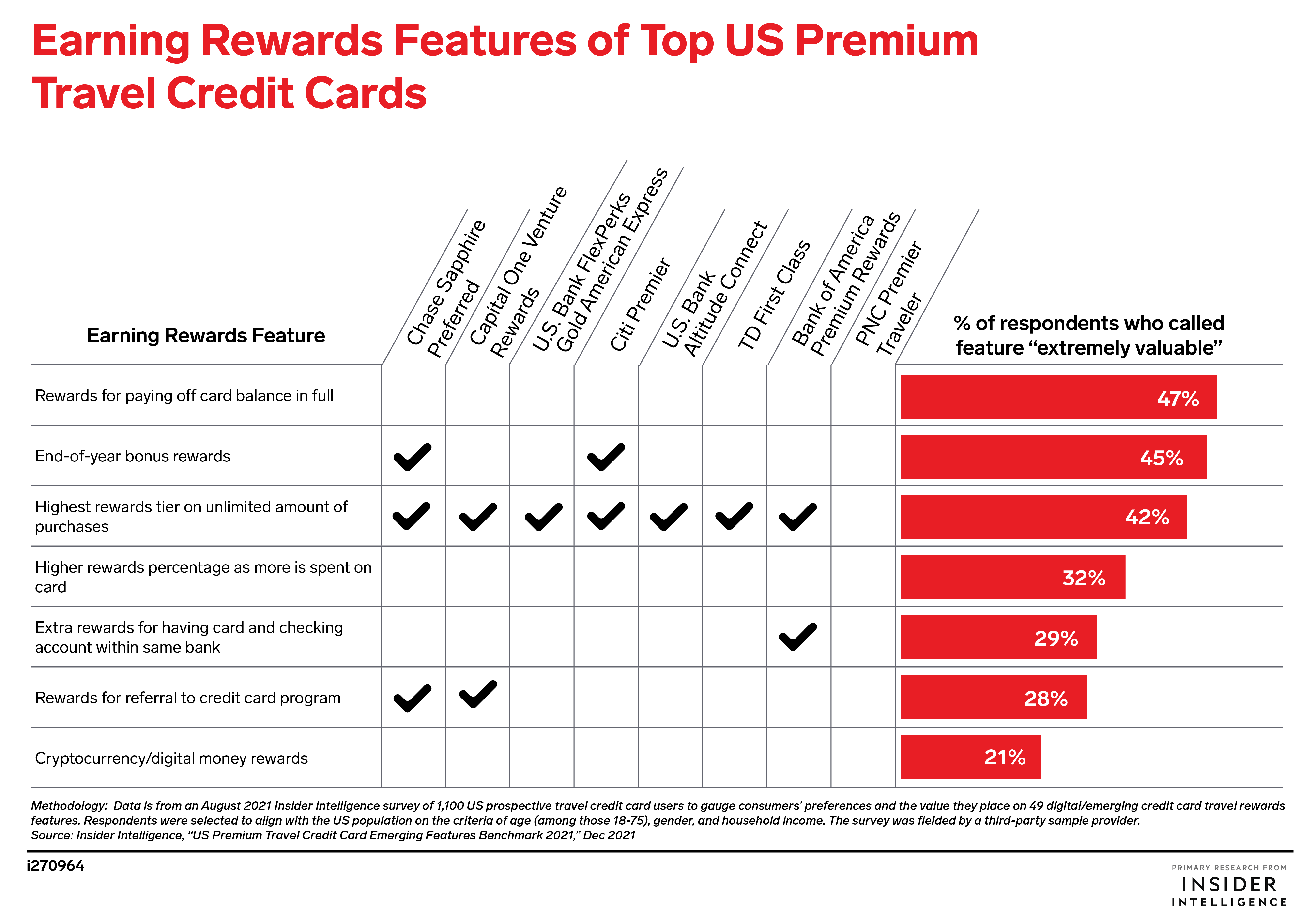 WHAT’S IN THIS REPORT? Competition to attract prospective travel credit card holders is growing fiercer as travel—along with consumers’ credit appetite—picks up. This inaugural benchmark report evaluates premium travel credit cards (with annual fees ranging from $75 to $99) based on their features across seven categories, and we weight their scores according to the results from a survey of US adults interested in a travel credit card.