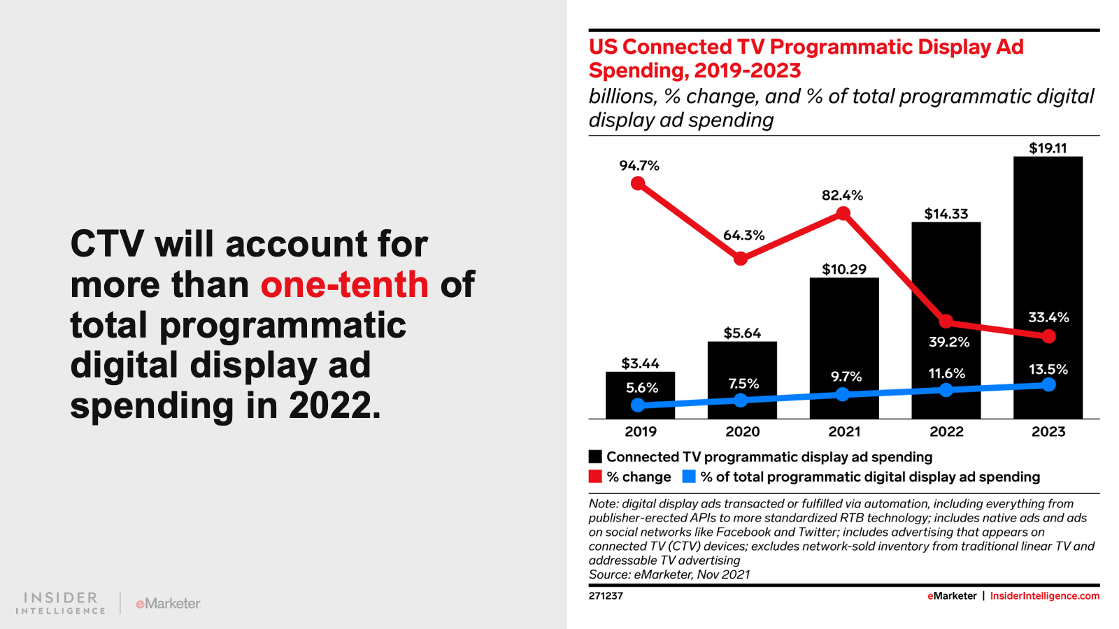 This year, programmatic CTV will increase by 39.2%, following an 82.4% increase in 2021.