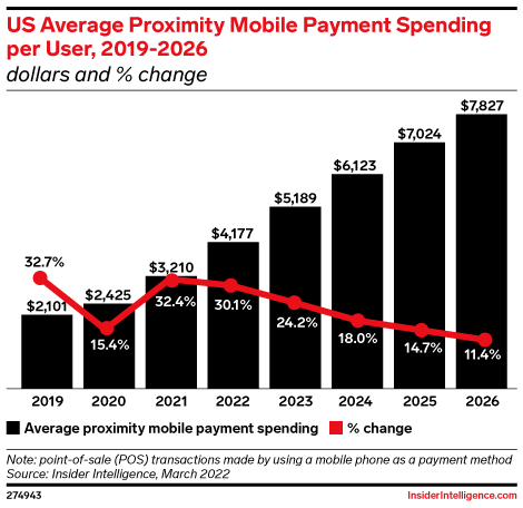 KEY STAT: Per-user proximity mobile spending will nearly double to reach $7,827 in 2026, as customers shift more dollars toward mobile wallets and away from other payment methods.
