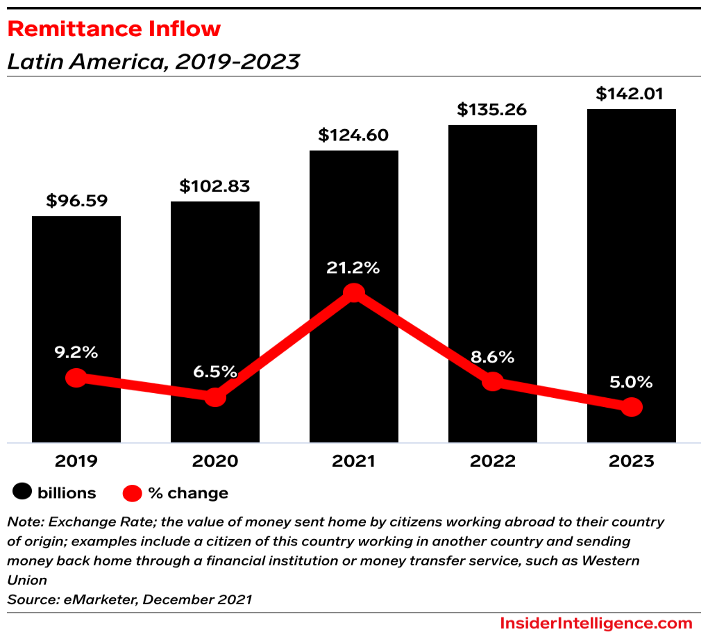 The big takeaway: As US-based remittance providers explore growth in Latin America, Venezuela presents a large untapped opportunity. While they will have to monitor how political dynamics unfold, US-based providers can bolster their presence in this region and rack up payments revenues.