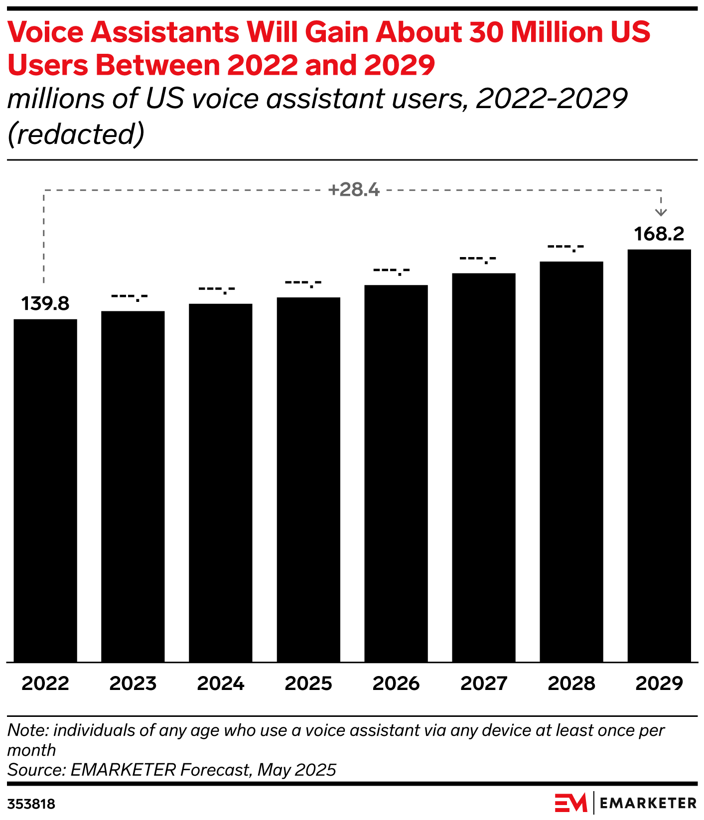 Key Stat: US voice assistant users will grow from 139.8 million in 2022 to 168.2 million by 2029—an increase of about 28.4 million users.
