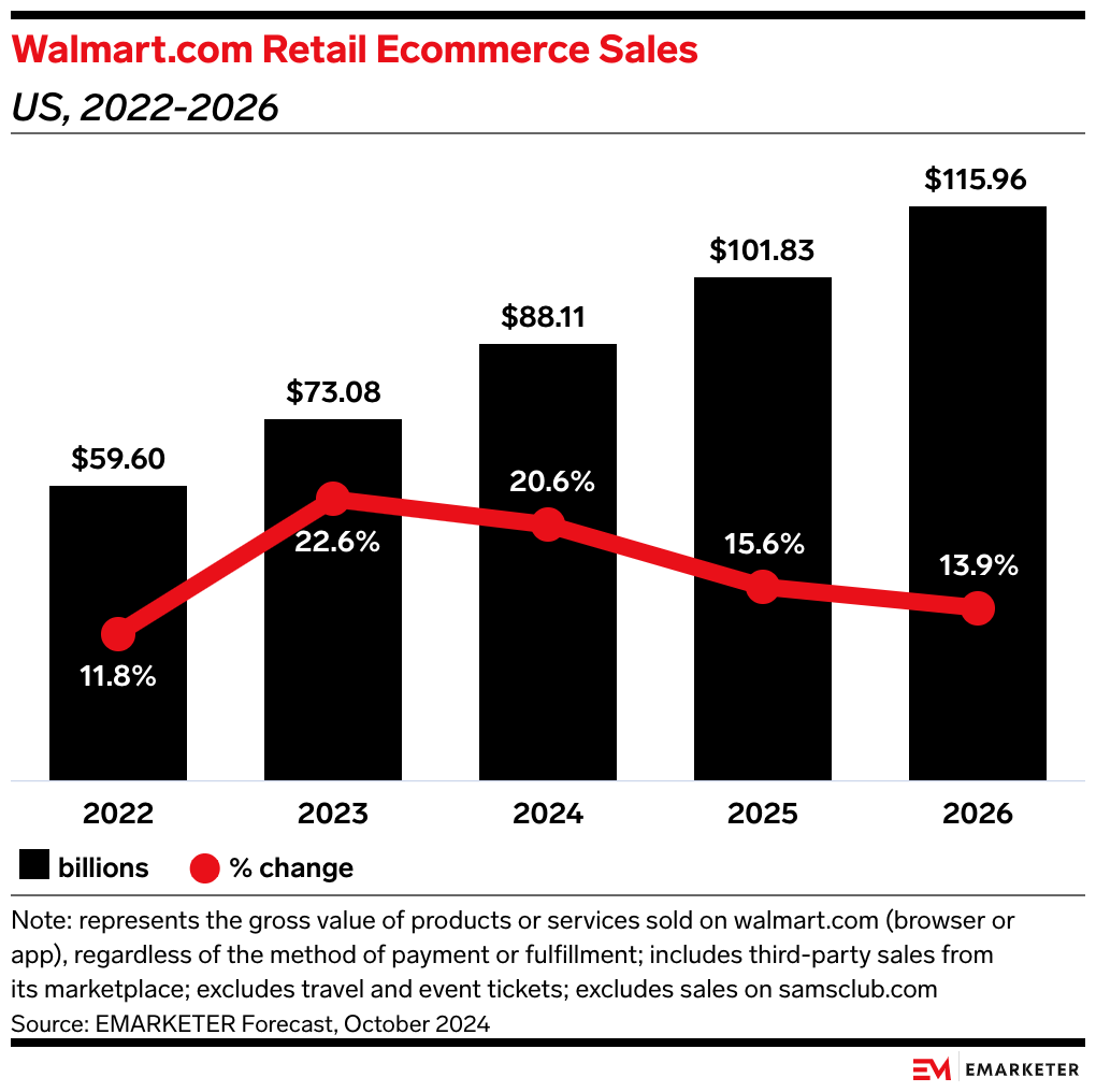 - Consumers want convenience. Making delivery faster and more efficient makes Walmart’s ecommerce offerings—including its Walmart+ membership program—more enticing. It also puts the retailer closer to its goal of achieving ecommerce profitability in the next two years.