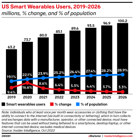 KEY STAT: By 2026, over 100 million wearable devices will connect to the internet in the US.