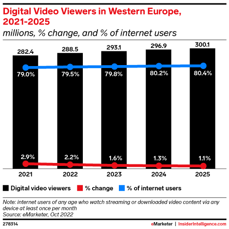 The pandemic fueled a bigger-than-expected increase in video viewing in 2020, and that audience is still growing. But given sharp rises in the cost of living, some consumers in Western Europe are cutting back on subscription video services.