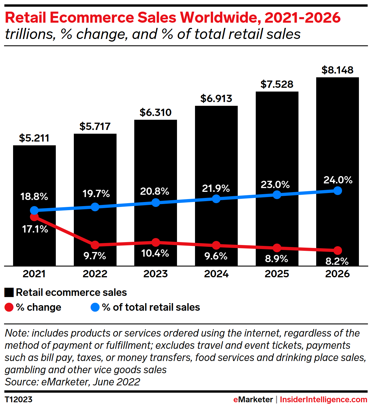 Retail ecommerce spending will grow slower than ever in 2022, as most of the world’s largest markets face economic challenges. Growth rates will not go negative, however, and some parts of the world will do just fine.