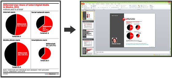 All eMarketer PRO reports are available in a PDF and PPT version. Present them right away to clients and executives.