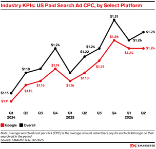 | Search Marketing, Retail Media | Retail Media Search Ad CPC Growth | Average retail media search ad cost per click (CPC) growth is the change in the average amount advertisers pay for each clickthrough on their search ad in the period. |