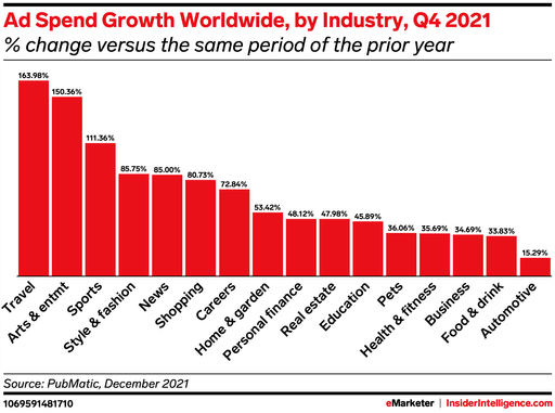 Pubmatic tracks over 15 trillion bids on a monthly basis across its client base, which allows it to provide reporting, by industry, on the year-over-year changes in ad spending at a macro level.