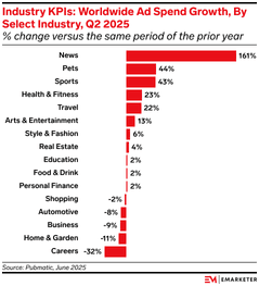 Pubmatic tracks over 15 trillion bids on a monthly basis across its client base, which allows it to provide reporting, by industry, on the year-over-year changes in ad spending at a macro level.