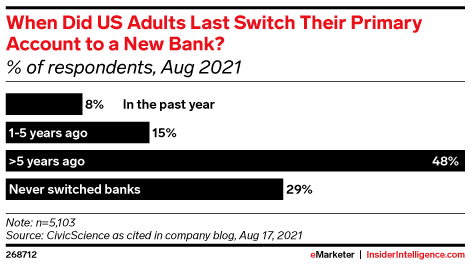 A Bankrate survey found it’s the main reason why US consumers don’t switch their accounts to another bank. Regulatory action could help, but marketing and product differentiation remain critical.