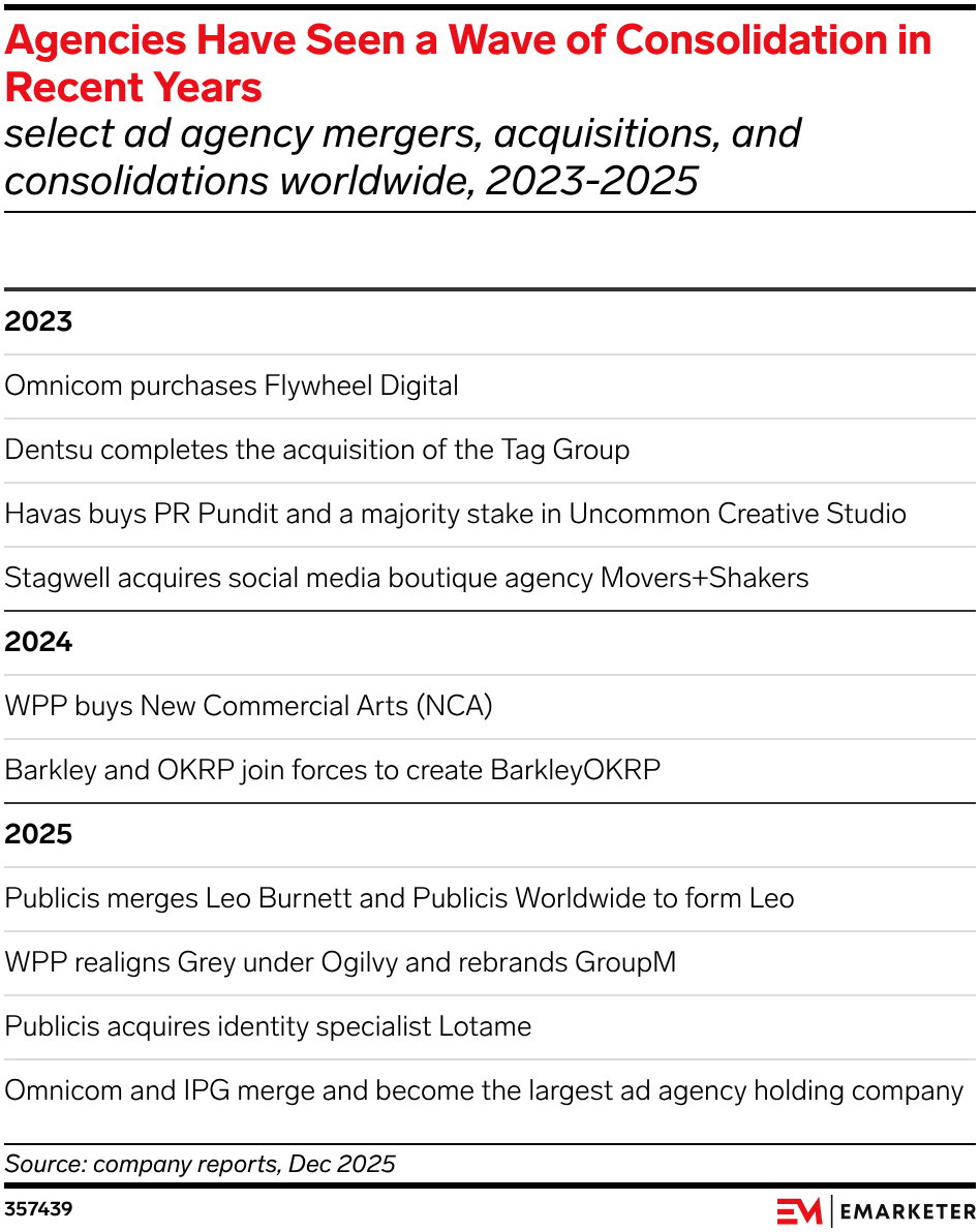 Agency M&A is now prioritizing data infrastructure; digital and tech firms dominated acquisitions as holding companies shifted from scale to capability.