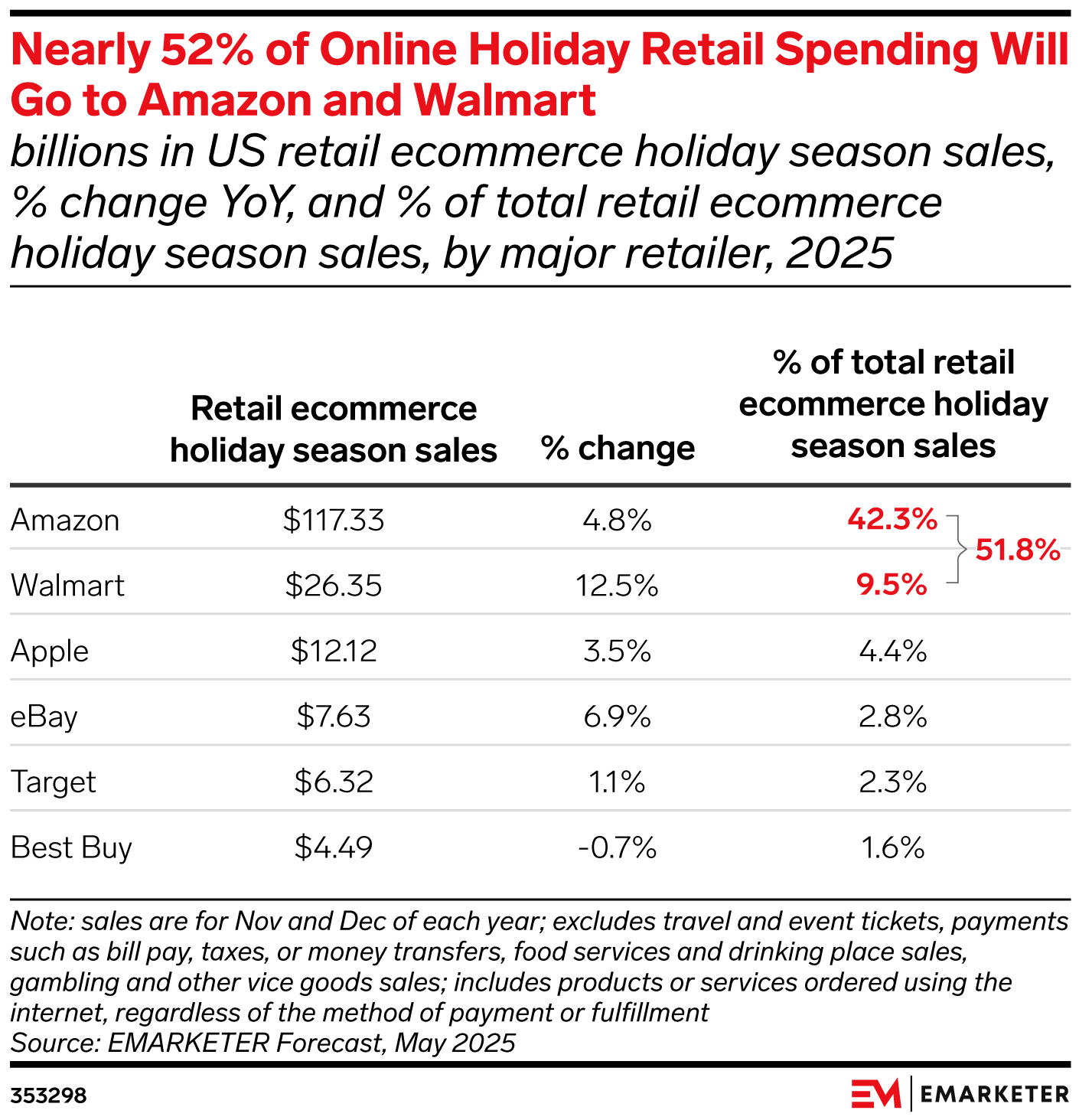 This year’s Amazon Big Deal Days sale is shaping up to be another success, according to multiple forecasts. Bain and Adobe both forecast healthy growth, while we expect Amazon's ecommerce sales to rise 8.8% YoY to $8.84 billion. A strong consumer appetite for October sales could bode well for the holiday season, although we—and most other forecasters—expect growth to slow as uncertainty weighs on spending.