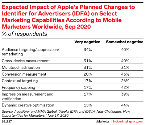 eMarketer was pleased to moderate a Tech-Talk Webinar featuring InMobi’s Robyn Meyers, vice president, West Coast brand partnerships, and Sergio Serra, senior product manager, SSP, along with Advertiser Perception’s Lauren Fisher, vice president, business intelligence. They highlighted the changes, how advertisers are currently thinking about Identifier for Advertisers (IDFA), and the best path forward.