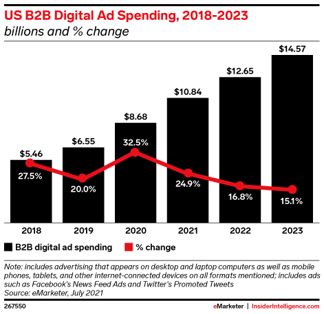 Display ads like banners and graphics, which have historically been less of a priority than search ads for B2B marketers, took up a greater share of US ad spending than ever before in 2020.