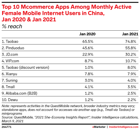 The retail ecommerce ecosystem in China is extremely diverse. While Alibaba and JD.com are the clear sales leaders, a handful of other players are holding their own, sometimes by carving out a niche market, be it Suning in consumer electronics or Mogujie in women’s apparel.