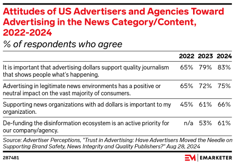 Advertisers prioritize news integrity: Supporting quality journalism now ranks third among corporate values influencing marketing strategies, marking a significant shift.