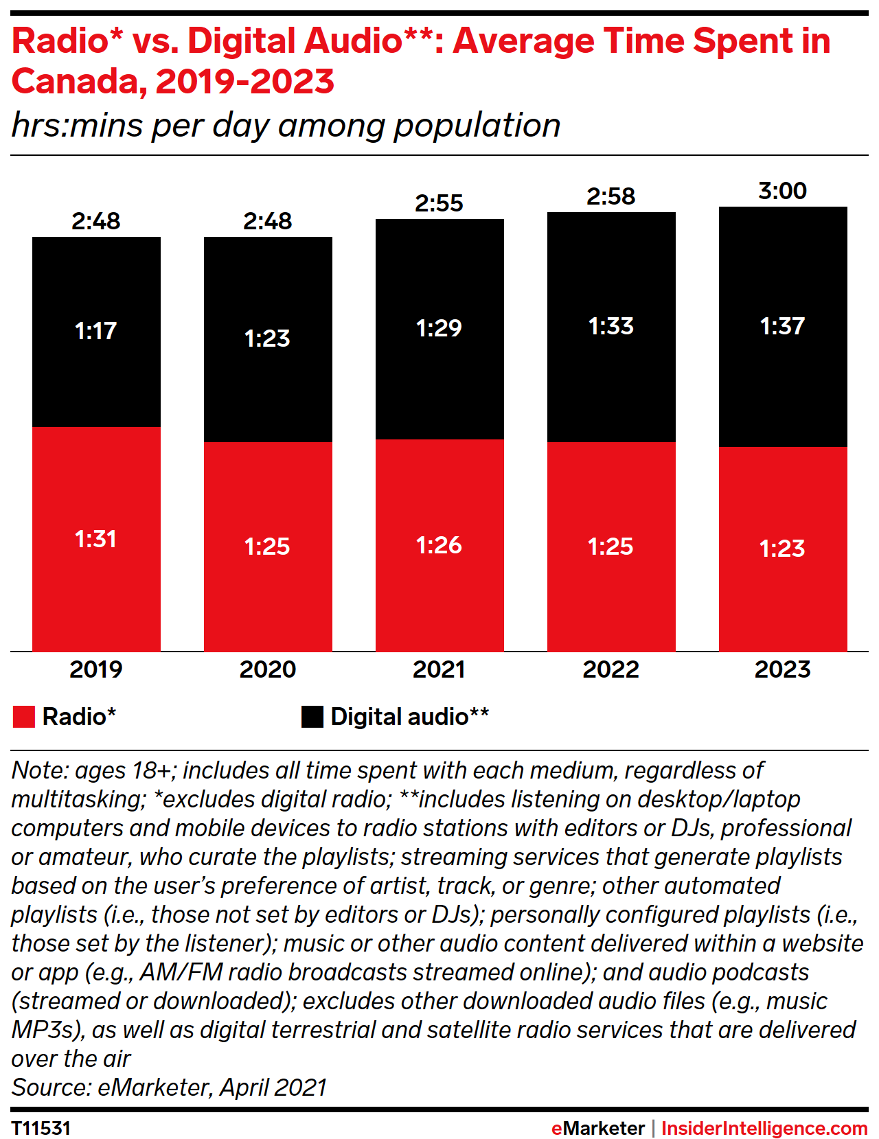 Time spent with digital audio surpassed that of radio for the first time in 2021.