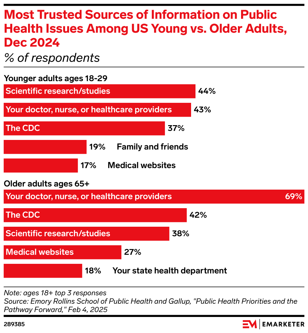 Americans’ trust in federal health agencies and political leaders continues to erode, but while many are confused about what to believe, they still want clearer guidance, per the latest Axios/Ipsos American Health Index. Federal agency staffing cuts, shifting vaccine guidance, and the glut of social media health information have fragmented Americans’ health trust. But trust hasn’t completely disappeared; it’s just gone local. Consumers still believe their doctors and families, creating an opening for healthcare and pharma brands to deliver clear, credible information through those trusted messengers.
