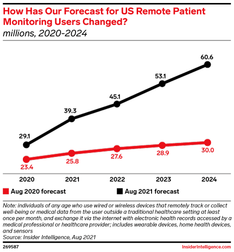 Remote patient monitoring will have over twice as many US users in 2024 as previously expected.