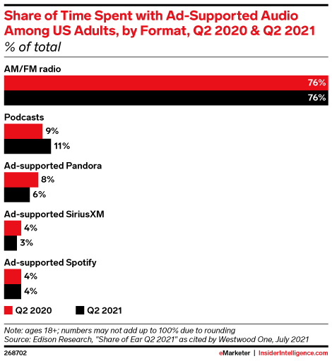 US adults spend significantly more time listening to terrestrial radio than to any other ad-supported audio format.