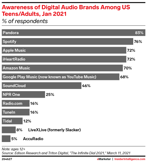 Pandora outpaces Spotify for brand recognition in US