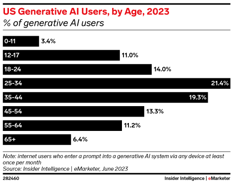In 2025, more than half of US Gen Zers (52.9%) and millennials (52.0%) will be monthly generative AI users, according to our forecast.