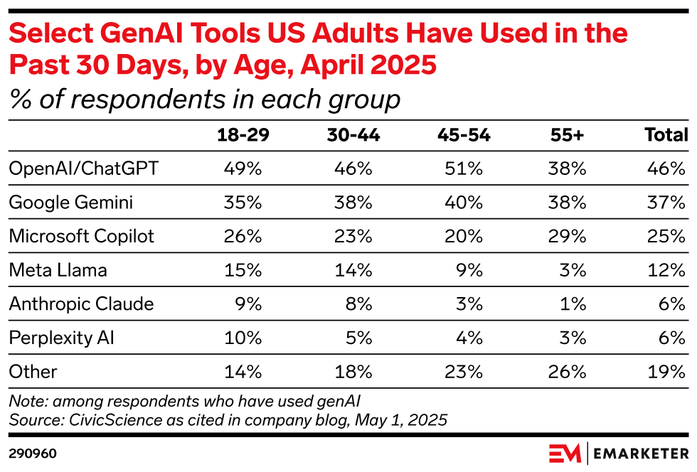 GenAI will reach about 51% of US internet users by 2029 as growth stabilizes, with search dominating use cases and Gen Z leading adoption. Amid rising competition from Google and others, ChatGPT will maintain dominance. Brands must adapt to AI-mediated customer relationships.