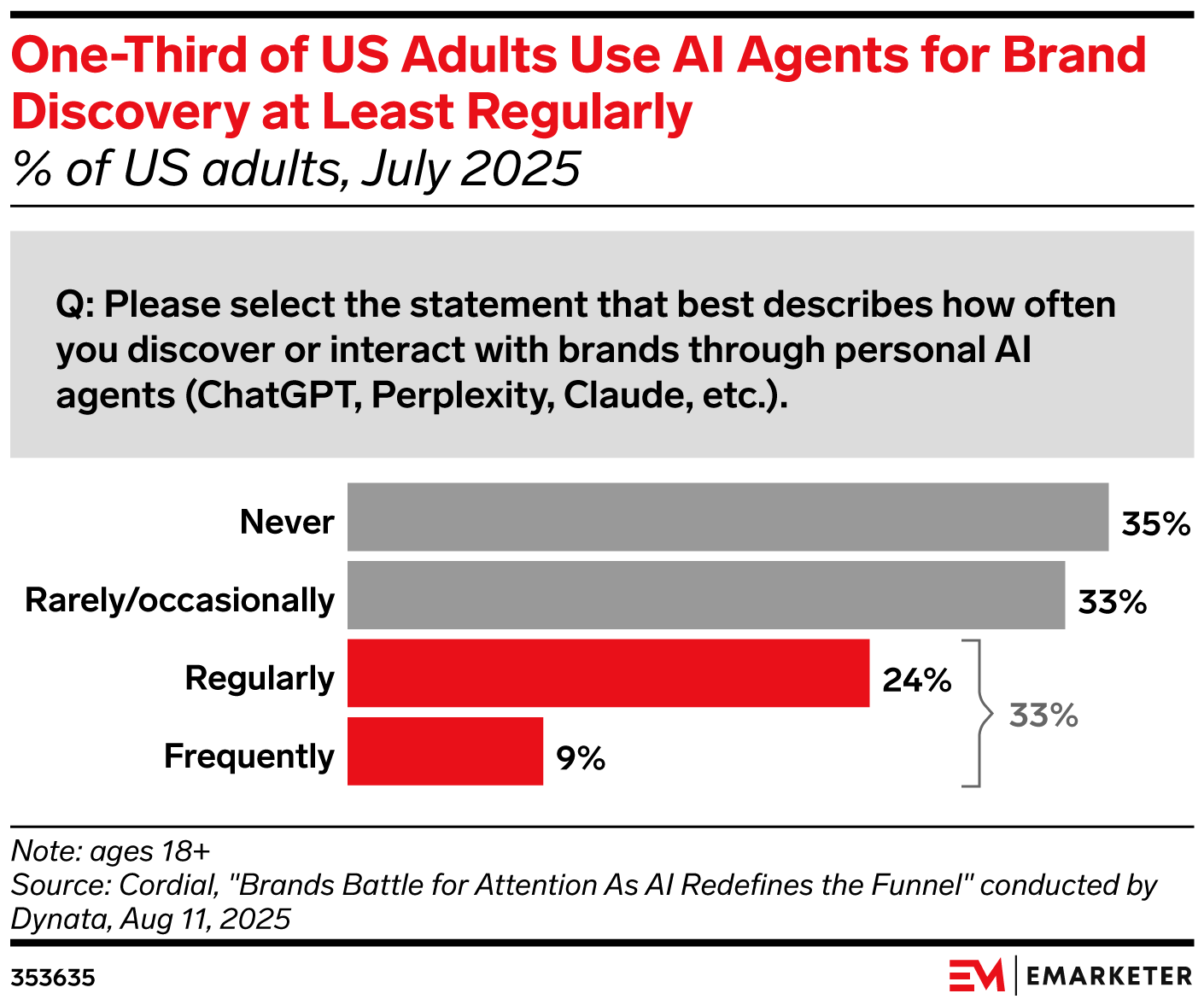 The news: Despite consumers’ rising use of AI agents for search, shopping, and discovery, brands are falling behind on generative engine optimization (GEO) strategies. 47% of brands have no deliberate GEO strategy or have no idea if they appear at all in AI agent responses, per a new report from Cordial. Another 47% have only just begun optimizing content for AI discovery. Our take: To boost visibility, brands should optimize for conversational context and create structured, machine-readable content that AI can index, like clear website FAQs, TL;DR summaries, and detailed product specs. Expanding presence across social platforms that feed AI training models, such as Reddit, Quora, and YouTube, can also improve chances of surfacing in AI-generated responses.