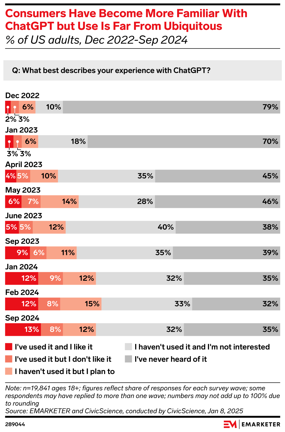 A September 2024 CivicScience/EMARKETER survey reveals consumer hesitancy toward AI tools. But data also pinpoints areas of receptivity, offering brands a blueprint for strategic implementation.