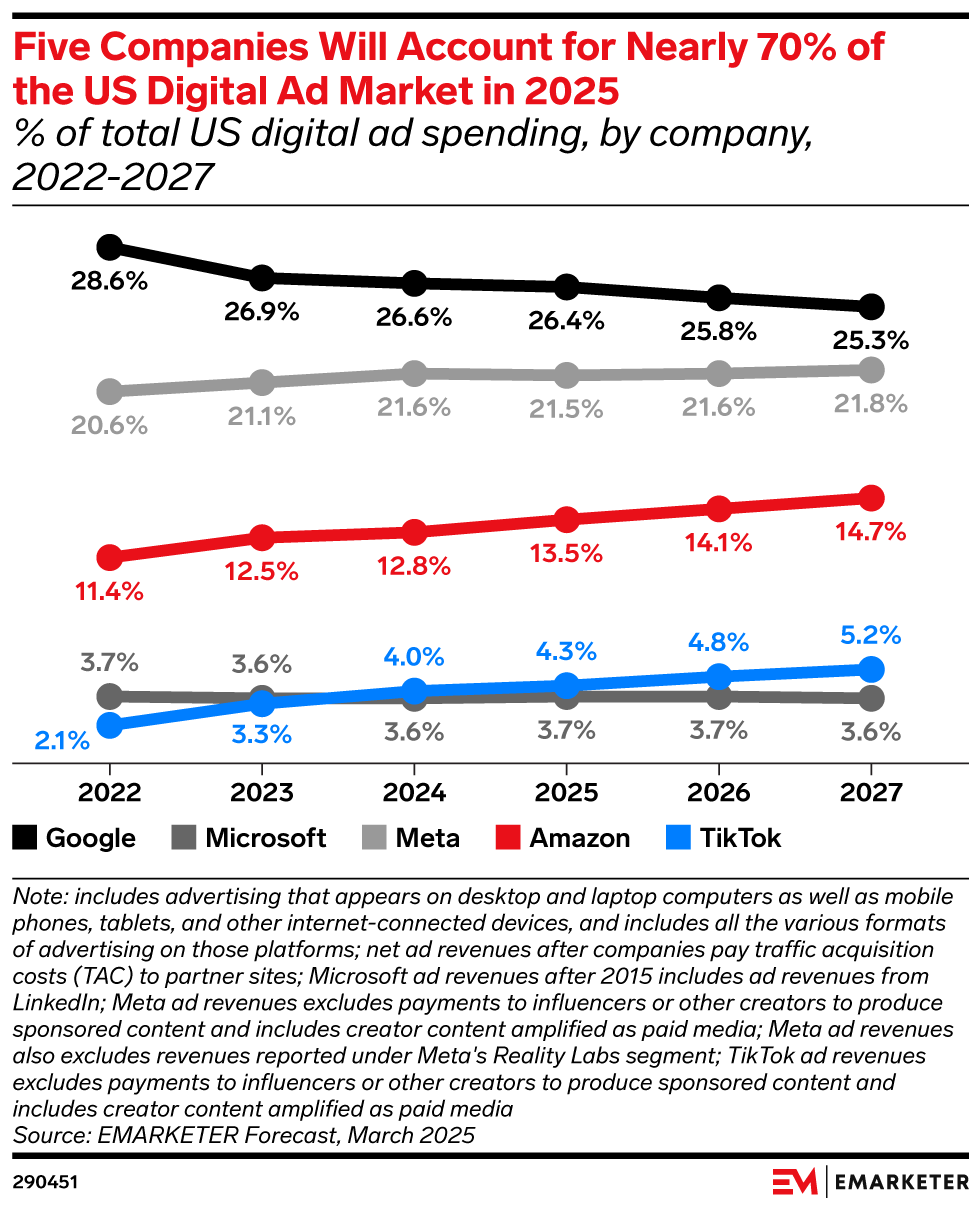 The news: The Trade Desk CRO Jed Dederick likened Amazon’s advertising approach to Google’s, accusing it of bundling and self-preferencing practices that threaten market competition. In an interview at Cannes Lions, Dederick urged Amazon to adopt a more open model like Meta’s, warning that closed systems could draw regulatory scrutiny. Our take: By framing Amazon as the next Google, The Trade Desk is angling to become the preferred neutral alternative for marketers. As Amazon expands in CTV and commerce media, regulatory pressure may follow. If it does, The Trade Desk is well-positioned to gain from any shift toward more transparent platforms.