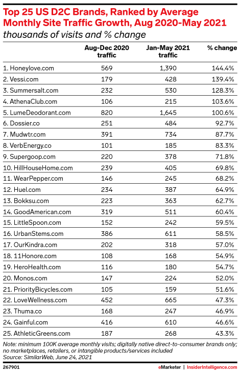 EMARKETER offers market research, trends and statistics for a variety of topics and industries. Here you will find a collection of reports, articles and other resources for D2c