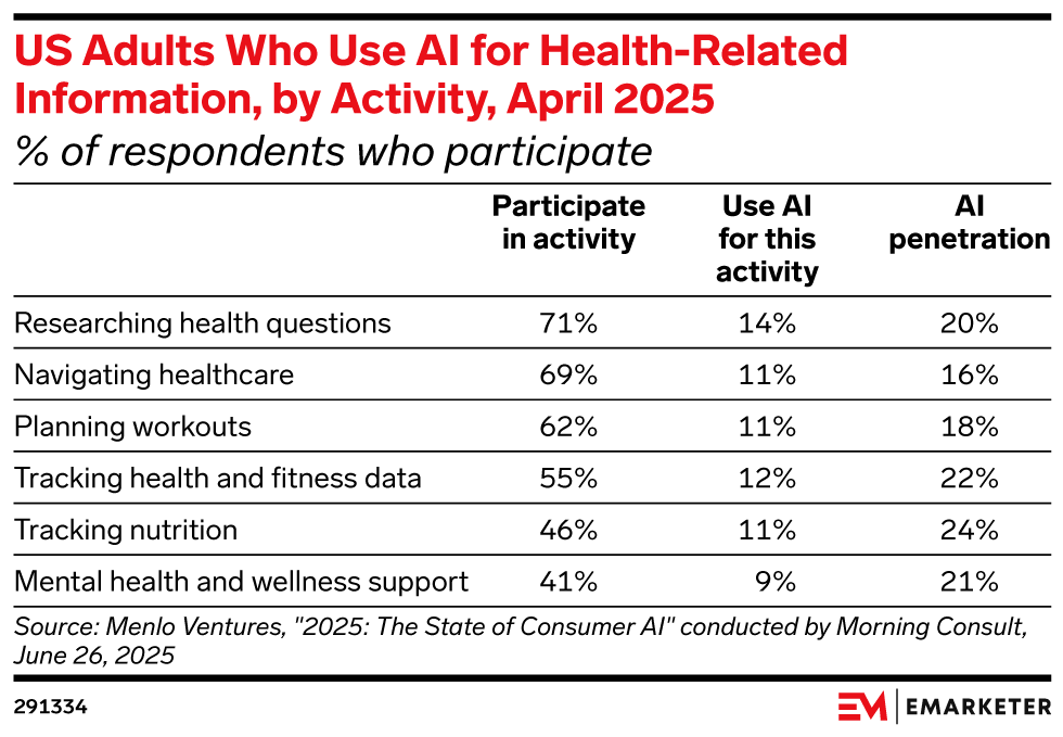 Most US consumers are already using digital tools for healthcare purposes, but three-quarters would prefer more personalized solutions, per a new Harris Poll sponsored by Verily. Healthcare marketers and brands need to use generative AI (genAI) tools, like remote monitoring, predictive analysis, and chatbots, to deliver personalized consumer experiences.
