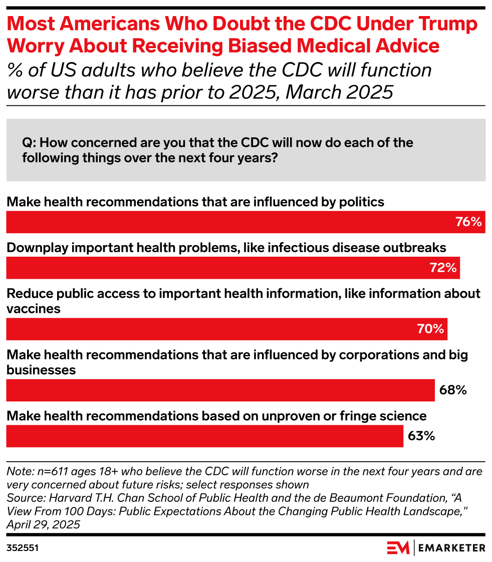 The news: HHS Secretary Robert F. Kennedy Jr. replaced the CDC’s influential vaccine advisory board with 8 new members, including some anti-vaccine advocates. Our take: The new HHS administration's public statements and actions undermine the safety perception of all vaccines. Drugmakers on the sidelines risk consumer trust—and vaccine uptake. It’s time to partner with respected medical groups like AMA to counterbalance confusion.