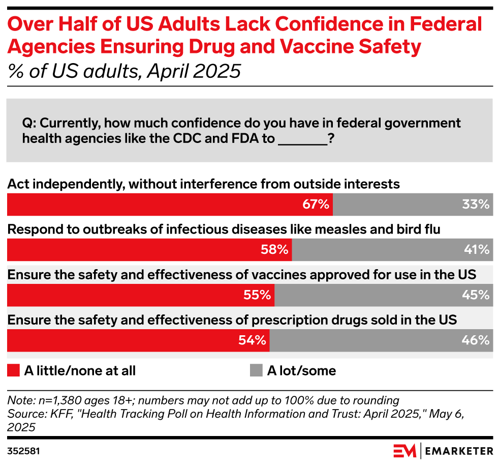 Americans aren’t confident that federal health agencies ensure safe and effective drugs: Pharma marketers need to lean on individual physicians and local health agencies to help consumers understand the safety and effectiveness of prescription drugs and vaccines.