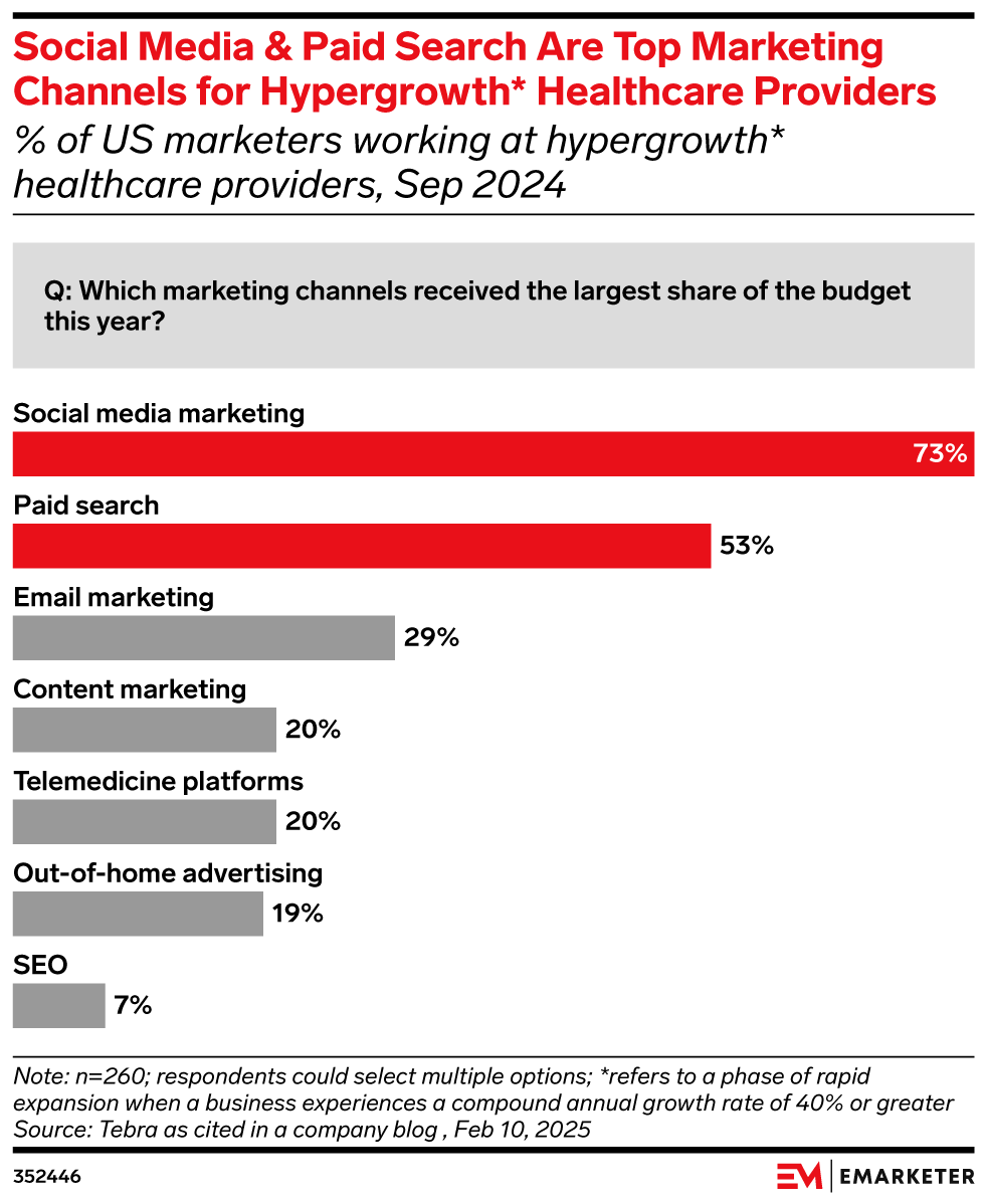 Rapidly growing healthcare providers are reinvesting in online marketing: Incumbents must embrace social and search marketing to ward off competition from telehealth and D2C providers.
