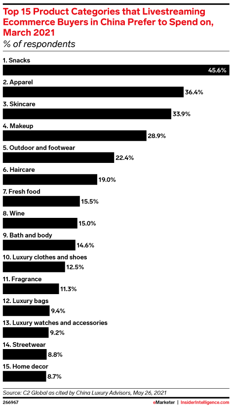The top 15 livestream shopping categories in China
