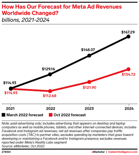 Our outlook for social ad spending in 2022 has deteriorated significantly since March. This report breaks down what went wrong in the past nine months, and what’s ahead in the next two years.