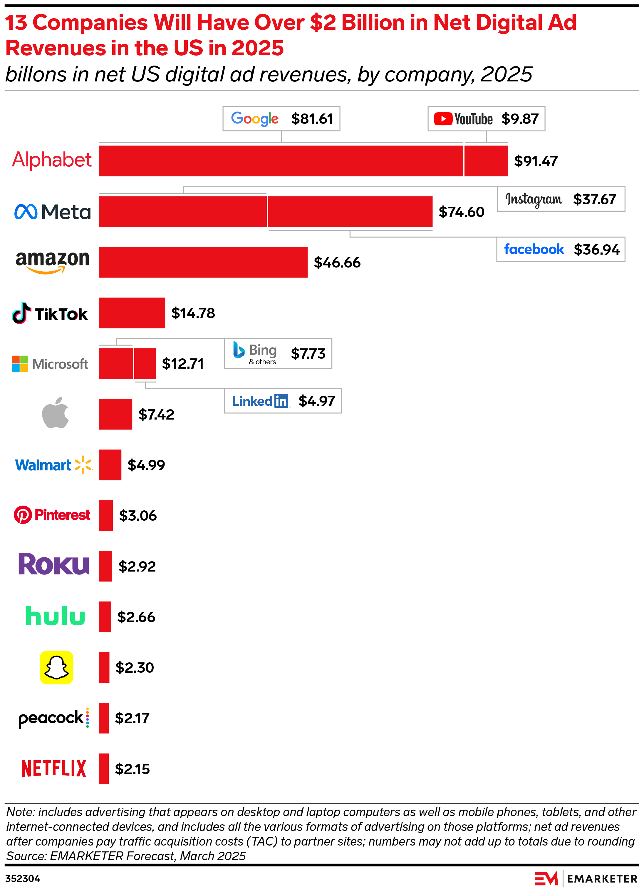 The news: While brands invest heavily in social media giants like Instagram and Facebook, smaller platforms are showing steady growth—indicating a future where ad opportunities go beyond the big players. While the Meta platforms make up an enormous 72.5% of US social network ad spending, smaller social media platforms are holding their own, experiencing growth at a similar rate to Meta. Our take: While advertisers shouldn’t discount the massive reach Meta offers, smaller players are increasingly valuable for driving results, especially as competition intensifies on larger platforms.